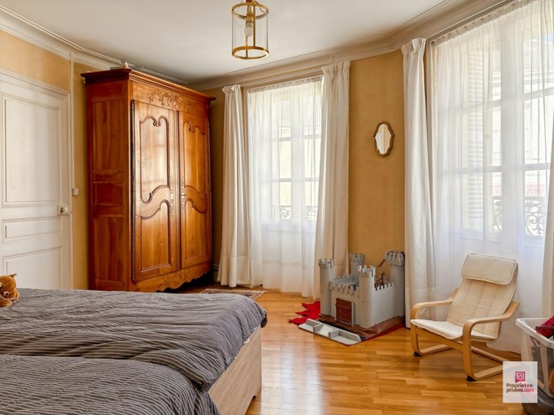 Maison de Maitre très lumineuse, de 200m² habitable offrant au rez-de-chaussée : une belle entrée, cuisine aménagée et équipée, séjour - salon, salon indépendant, wc, cave, buanderie-cellier.