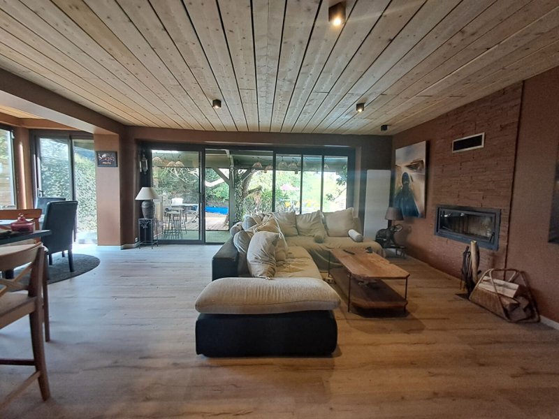 Profitez de la terrasse plongeante sur le jardin avec piscine chauffée.