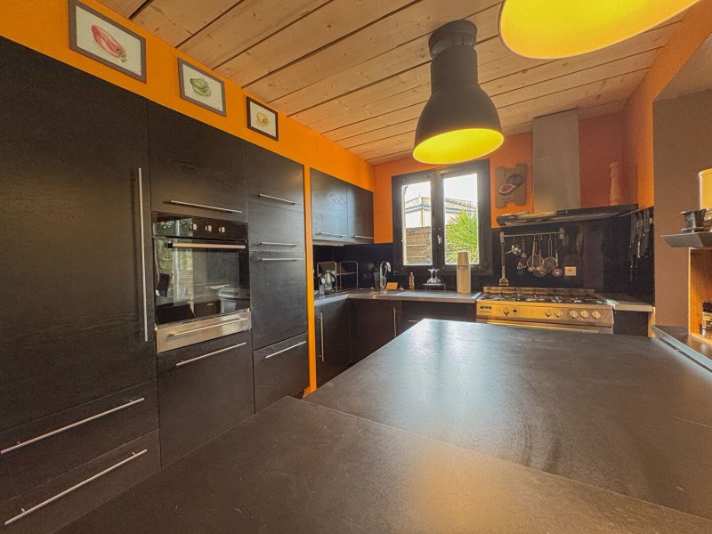 Maison de plain-pied, comprenant une spacieuse pièce de vie profitant du confort de la cheminée Insert, une cuisine aménagée et équipée, trois chambres dont deux avec salle d'eau privative, un WC, un cellier.