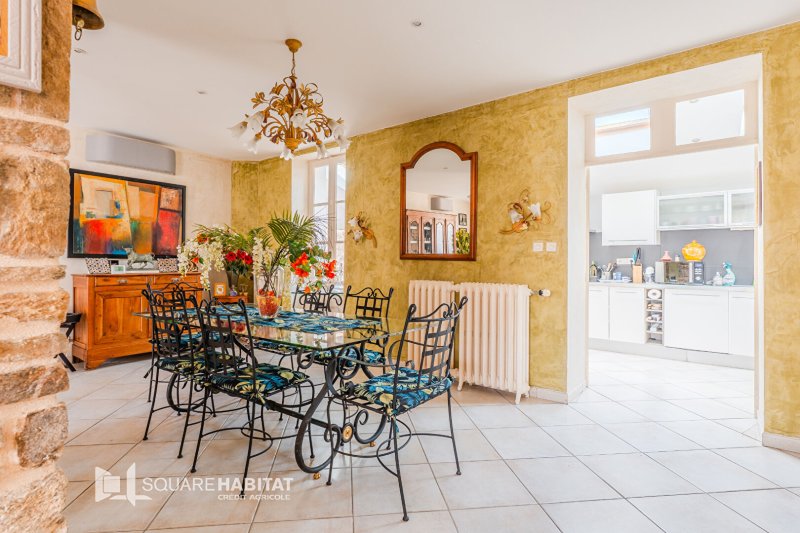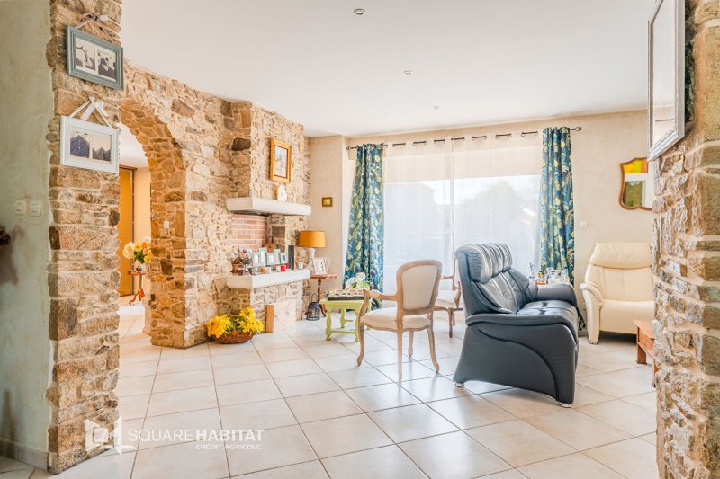 La maison dispose également d'une cour extérieure agréable et d'un garage de belle capacité. Cette propriété offre un cadre de vie confortable et fonctionnel, alliant cachet de la pierre et qualité de vie au quotidien.