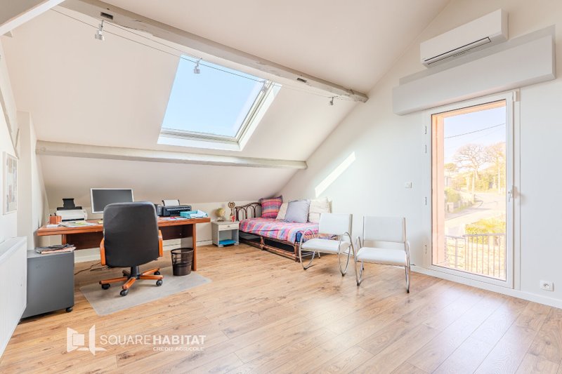À l'étage, un palier dessert trois chambres, une salle d'eau et des WC ; la dernière chambre, aux beaux volumes, offre la possibilité d'exercer une profession libérale grâce à son accès indépendant par l'extérieur, idéal pour accueillir une clientèle si besoin.