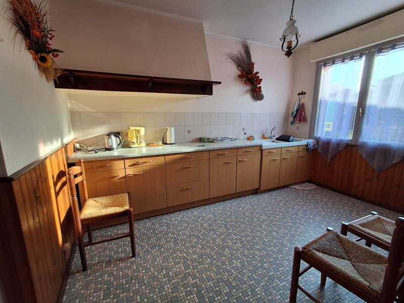 Au rez-de-chaussée, vous trouverez un espace cuisine avec des meubles bas, un séjour de 18m² avec cheminée foyer insert, une arrière cuisine desservant une cour extérieure ainsi que la salle d'eau et les wc.