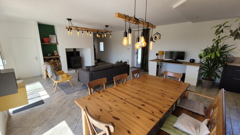 TROP TRAD, BIEN VENDU PAR L'AGENCE VIMMO ! L'agence Vimmo vous propose cette jolie maison aux portes de St Philbert de Granlieu dans un écrin de verdure. Alliant le charme de l'ancien (pierre, poutres en bois) et le comtemporain (cuisine, ouvertures, déco...), ce bien offre tout ce que beaucoup cherchent ; FAIRE VITE ! Comprenant au RDC un joli salon-séjour plein de charme, une grande cuisine à vivre aménagée et équipée (2022), une arrière cuisine buanderie, un WC, accès à un garage. A l'étage, 3 chambres avec placards ou dressing, une grande salle d'eau (douche). Chauffage par poêle bois et radiateur électrique (récents et de qualité). Possibilités d'évolutions (aménagement du cellier ou agrandissement). Terrain de près de 1 400 m2, jardin agréable et intime, énorme terrasse carrelée exposée Sud-Est. Maison mitoyenne par 1 côté et 2 caves (rénovées aussi) complètent ce bien. 35min du centre de Nantes 2min de St Philbert Cette maison a été entièrement révovée en 2014 avec des matériaux de qualité et par des professionnels. En bref, une superbe maison familiale bien située, prête à vivre, sans vis-à-vis ni travaux ; À vos offres ! Visites, informations et photos supplémentaires en m'appelant au O6 85 14 99 07. Victor Gaudin - Agent Immobilier FNAIM.