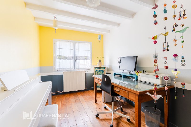A l'étage, un palier desservant 2 chambres, un bureau, une salle de bain avec wc. Combles aménagés.