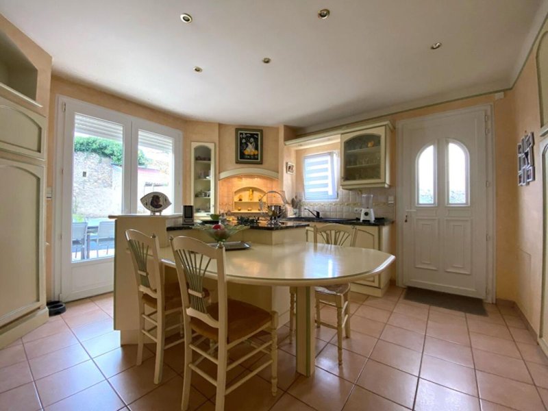 A l'extérieur: Terrasse exposée Sud/Ouest, atelier avec cave de 25 M², terrain clos et arboré avec puits.