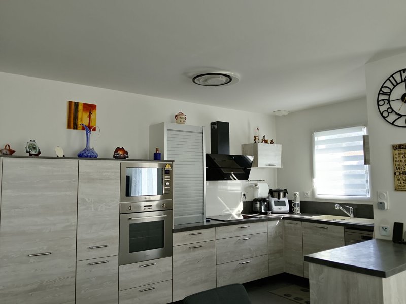 Située dans un environnement calme et recherché, à proximité du littoral, cette belle maison de plain-pied récente offre de beaux volumes et un agencement fonctionnel. Elle se compose de : Une entrée donnant sur un séjour- salon lumineux, une cuisine aménagée et équipée, ouverte sur la pièce de vie, une terrasse avec pergola bioclimatique,3 chambres, une salle d'eau, un WC, un couloir avec rangements, un garage, le tout sur un terrain clos et paysagé.