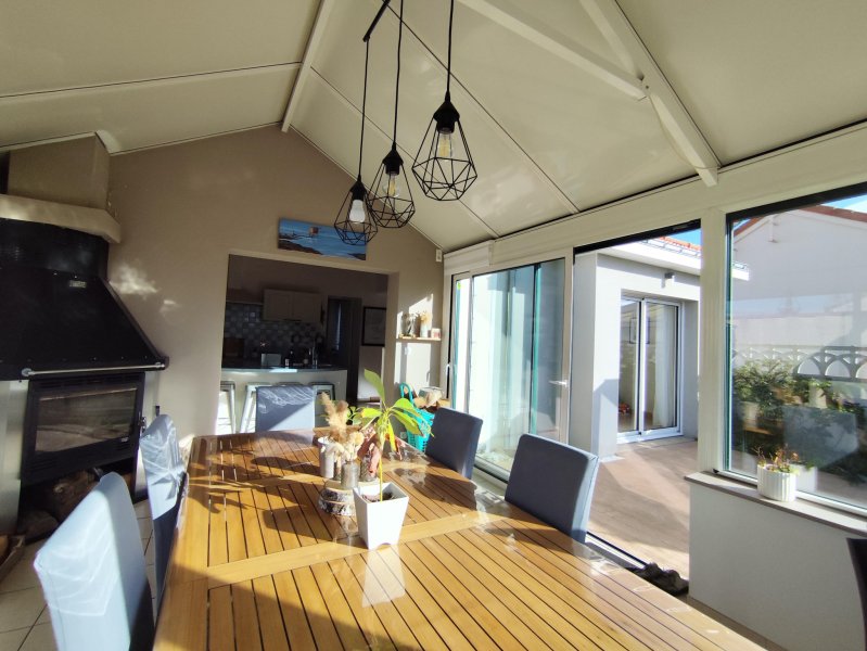 L'AGENCE PREFAILLAISE vous propose : ACCES PRIVE SUR LE SENTIER DES DOUANIERS. Maison familiale de plain-pied offrant 127m2 avec des pièces de vie LUMINEUSE. Salon donnant sur terrasse, cuisine ouverte aménagée et équipée, véranda d'hiver avec poêle à bois, dégagement pour accèder aux 3 chambres, salle d'eau-buanderie et wc. Le plus : Dépendance loué d'environ 25m2 offrant pièce de vie, chambre, salle d'eau-wc. Locataire, loyer 415EUR hors charges. Stationnements. Parcelle de 1022m2, clos et sans vis à vis avec accès portillon donnant sur le sentier des douaniers et cabanons Faîtes nous confiance !