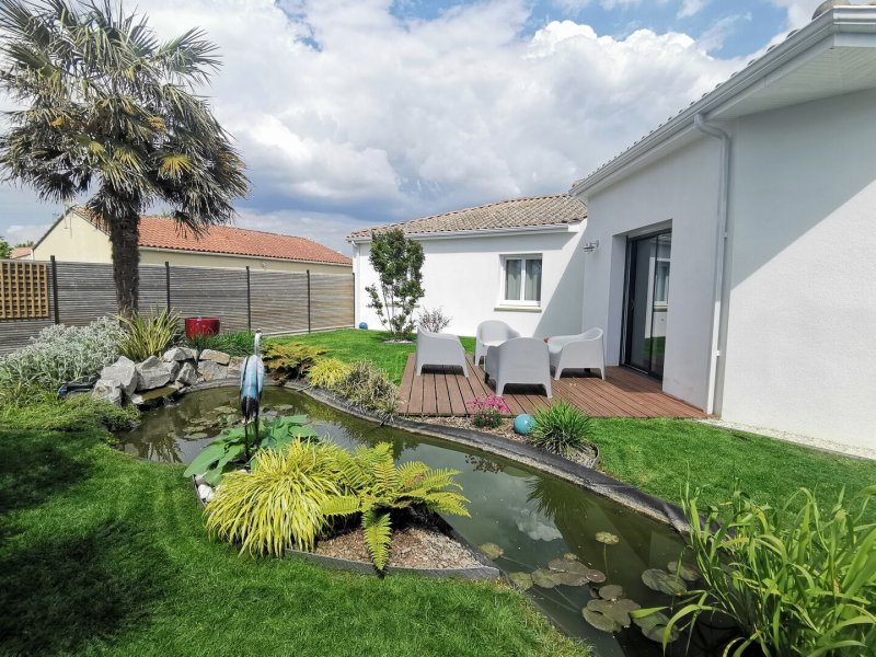 900 m de la mer et du Port de la Gravette, proche bourg plain pied récent avec de belles prestations sur un jardin de 848 m² joliment paysagé avec cour, bassin clos, sans vis à vis, Salon Séjour de 63 m² avec cuisine très bien équipée ouvrant sur terrasse, Ar-cuis Lingerie, 4 chambres, Sd'eau, Atelier de 19 m² attenant + double garage et préau. plancher chauffant par Aérothermie, A découvrir !