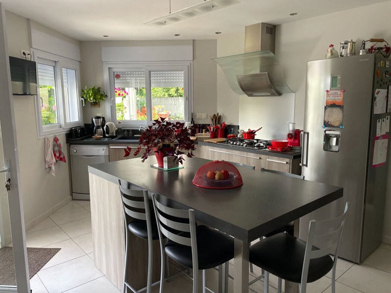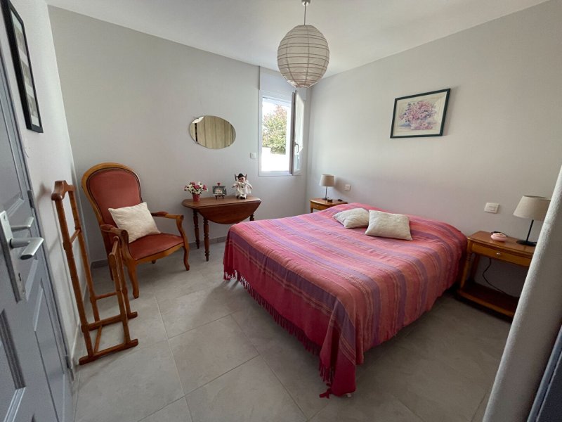 Un ilot de Verdure au coeur du bourg, proche tous commerces et non loin des plages de port Meleu, maison contemporaine de plain pied sur un agréable terrain clos de 1400 m², sans vis à vis, au calme au fond d'une impasse privée.