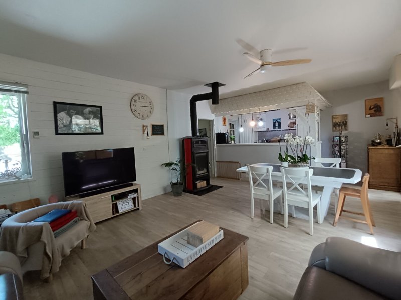 Cuisine aménagée ouverte sur le séjour, une arrière cuisine attenant, Une pièce pouvant servir de chambre ou bureau, Salle de bain avec douche et WC