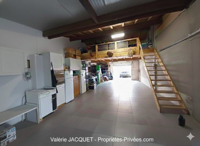 Le garage double de 54 m² au sol offre un potentiel exceptionnel: atelier, garage...et offre un espace mezzanine pour encore plus de rangements...
