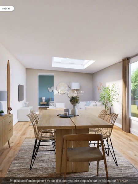 Séjour Salle à manger, cuisine aménagée, 2 pièces de 7 m² et 8 m², faisant office de chambre, douche, wc, cabinet de toilette. Le tout à rénover.