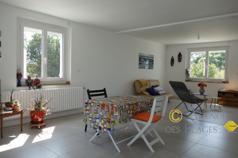 LA TURBALLE - Maison rénovée 5 chambres à vendre - Plage et commerces à vélo Maison rénovée, 5 chambres, à vendre à La Turballe, située à portée de vélo du centre-ville et de la plage : entrée, séjour-salon très lumineux, cuisine aménagée-équipée, 3 chambres, salle d'eau, wc, placards, dressing, à l'étage : une mezzanine avec cheminée, une pièce avec coin cuisine, 2 chambres, salle de bains, wc, placards, une petite pièce mansardée au-dessus, Grand garage, chaufferie (pompe à chaleur), 2 pièces. Terrain de 600 m², puits avec pompe et ballon surpresseur Les informations sur les risques auxquels ce bien est exposé sont disponibles sur le site Géorisques : www.georisques.gouv.fr