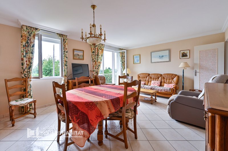 Au rez-de-chaussée, un appartement indépendant T2 et un garage, à l'étage, belle pièce de vie baignée de lumière sur balcon, cuisine aménagée équipée indépendante, trois chambres, salle d'eau et WC.
