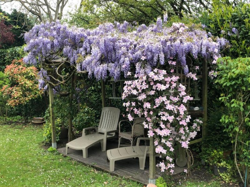 A l'extérieur vous profiterez d'un jardin exposé plein sud agrémenté de dépendances, et d'un chalet.