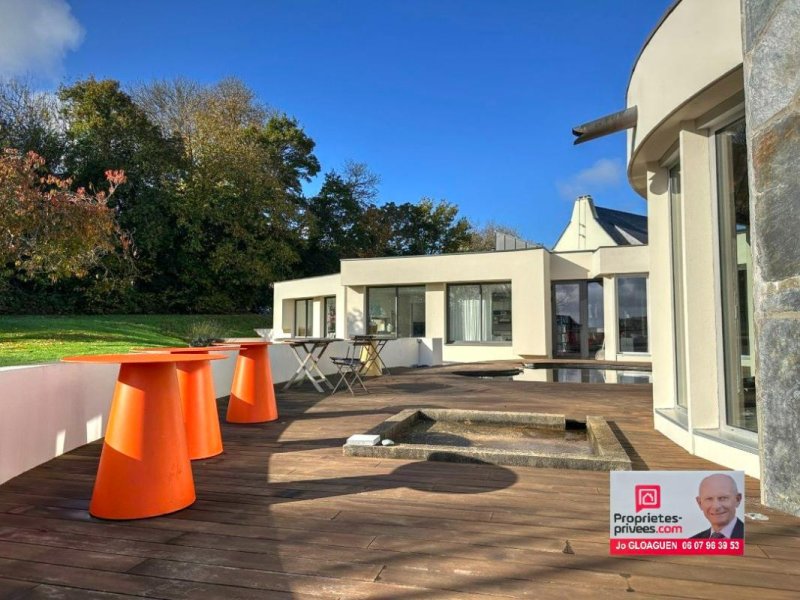 EXCLUSIVITÉ. Côtes d'Armor. 22300 Lannion. Jo Gloaguen vous propose une maison d'architecte entièrement de plain-pied de 260 m2 habitables, sur un terrain sans vis à vis, clos et arboré de 4200 m2 en centre-ville et à 10 mn de la mer. Elle comporte 8 pièces, 4 chambres (5 possible), 2 salles de bain, 2 salles d'eau, 3 wc. La construction initiale sur les plans de Roger Le Flanchec, a été complétée depuis par une extension contemporaine plus moderne et en harmonie avec la précédente. Le rez de chaussée comprend : l'Entrée, un grand séjour-cuisine-salon-salle à manger avec coin cheminée et bibliothèque. De nombreuses baies vitrées ouvrent sur la terrasse, le bassin, et le grand jardin situés plein sud et préservant l'intimité. Ces baies s'alignent en S pour ne former qu'une seule et même surface. Le séjour est adossé à un espace pour chambres d'enfants à lits superposés repliables, qui pourra convenir à un autre usage. L'escalier à vis qui permet d'accéder au sous-sol et à sa cave s'inscrit dans un cornet de béton moulé orné de mosaïques comme la table contiguë voisine. Plus loin, l'extension comprend l'espace nuit, récent et plus classique. Il est séparé de la partie jour par une buanderie et une pièce de rangement. Cette dernière comporte un poêle, un accès à la terrasse, et communique avec salle de bain, douche, wc indépendant, et trois chambres très lumineuses et de bonne dimension. Une quatrième chambre avec salle de bain-wc et grand dressing, termine cette partie très claire et géométrique, qui contraste avec le grand séjour tout en arrondis et orné de boiseries d'iroko d'inspiration marine. La rénovation récente a été conçue pour un accueil très confortable pour une famille ou des amis. Toutes les pièces ainsi que la terrasse bénéficient d'une vue unique sur le jardin paysagé à l'abri des regards. Les sols en pierres d'ardoises et les carrelages en mosaïque entretenus avec soin attestent l'origine d'une maison d'architecte renommé. La conception particulière de la maison permet le chauffage partiel par rayonnement et les huisseries bénéficient d'une très bonne isolation thermique attestée par un excellent bilan énergétique. La chaudière au gaz est récente et l'assainissement collectif aux normes. Un garage pour 4 véhicules et séparé de la maison, complète le bien. Cette propriété conviendra idéalement à des acquéreurs en recherche d'esthétisme pour une résidence principale ou de vacances à deux pas des commodités de Lannion et du TGV et à moins de 10 minutes des plages. Budget : 699 900 euros. Honoraires charge vendeurs. Information d'affichage énergétique sur ce bien : classe ENERGIE : C, indice 179 et classe CLIMAT : C, indice 16. Les informations sur les risques auxquels ce bien est exposé sont disponibles sur le site Géorisques : www.georisques.gouv.fr. Pour visiter et vous accompagner dans votre projet, contactez Jo Gloaguen, au 06 07 96 39 53 ou par courriel à j.gloaguen@proprietes-privees.com. Visio possible sur demande. Cette présente annonce a été rédigée sous la responsabilité éditoriale de Jo Gloaguen agissant sous le statut d'agent commercial immatriculé au RSAC St Brieuc n°750 363 079 auprès de la SAS PROPRIETES PRIVEES, Réseau national immobilier sur internet, ZAC du Chêne Ferré, 44 Allée des Cinq Continents, 44120. VERTOU, RCS NANTES n° 487 624 777, Carte professionnelle T et G n° CPI 4401 2016 000 010 388 CCI Nantes-Saint Nazaire, Garantie GALIAN, 89 rue La Boétie, 75008 Paris - T : 1 500 000 euros - G : 120 000 euros. Mandat réf : 424 793. Achats, ventes, estimations offertes, Le professionnel garantit et sécurise votre projet immobilier.