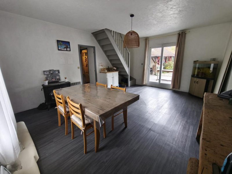 Cette longère se compose d'un séjour-salon Cheminée, salle à manger, cuisine ouverte, une chambre, buanderie, un WC et une salle de bain douche.
