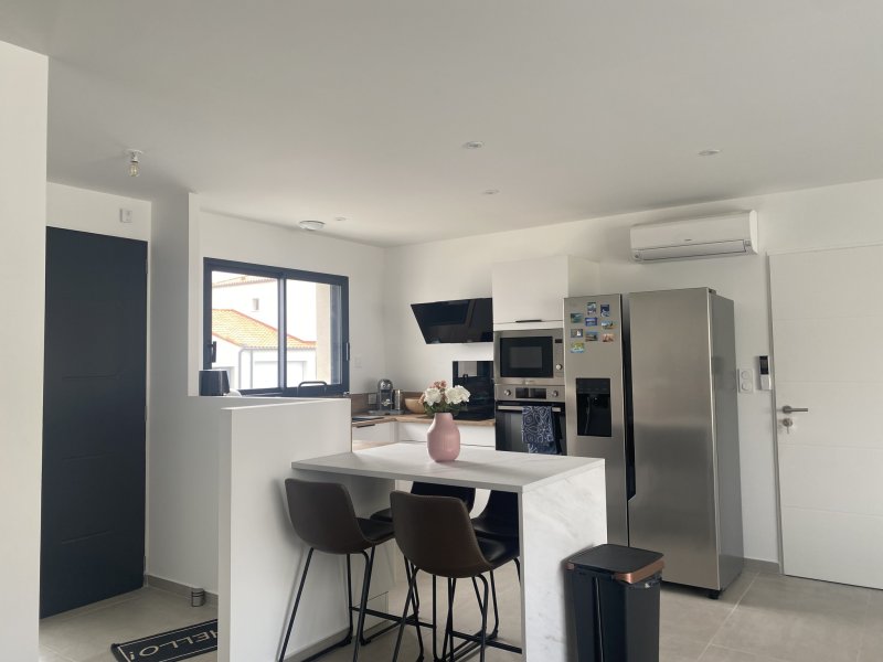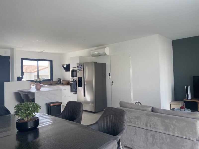 *NOUVEAUTE CO IMMOBILIER* à découvrir pour ce joli plain pied neuf (fin 2024) en lotissement proche commerces et écoles à pied, comprenant une entrée sur une grande pièce de vie lumineuse avec son coin cuisine AE américaine et son salon cocooning, un dégagement desservant trois chambres sur parquet dont deux avec placard donnant en façade et l'autre avec son grand dressing aménagé et une baie donnant sur la terrasse derrière. Une salle d'eau et un wc séparé. Un garage attenant avec porte électrique et sectionnelle, le tout sur une parcelle d'environ 416 m2 close sur l'arrière. SES PLUS : Confort énergétique A, RE 2020, pompe à chaleur air/air + climatisation, tout à l'égout - JUSTE A POSER SES VALISES Prix : 328 000 EUR HAI dont 4.13%TTC d'honoraires d'agence inclus à la charge de l'acquéreur. Les informations liées aux risques auxquels ce bien est exposé sont disponibles sur le site Géorisques : www.georisques.gouv.fr