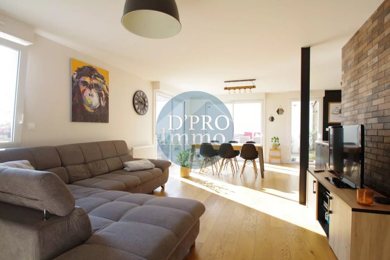 À l’extérieur, vous profiterez d’une vaste terrasse d’environ 80 m², idéale pour vos repas en plein air et vos moments de détente, ainsi qu’un garage attenant.