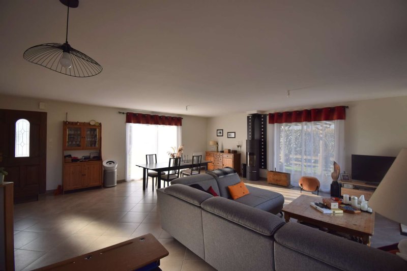 ANP IMMOBILIER VOUS PRESENTE EN NOUVEAUTE Dans un environnement calme et agréable, cette maison de plain-pied édifiée en 2007 d'environ 125 m2 habitable offrant un cadre de vie idéal proche de toutes les commodités ! Elle proprose une très grande pièce à vivre d'environ 67 m2 avec lumière traversante, 4 chambres, WC, salle d'eau, cellier ainsi qu'un garage de plus de 49 m2. La maison bénéficie d'un entretien irréprochable et d'un grand confort, le tout sur un terrain de plus de 1 000 m2 soigneusement aménagé - Classe énergie C et Classe climat C - Prix de vente 360 525 EUR dont 4.50% TTC d'honoraires charge acquéreur (Prix 345 000 EUR hors honoraires). Les avantages : 4 chambres spacieuses Grand jardin de 1077 m2 entièrement constructible Garage de 49.50 m2 avec portail motorisé Maison saine et parfaitement entretenue Environnement calme et agréable