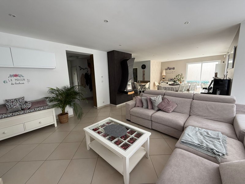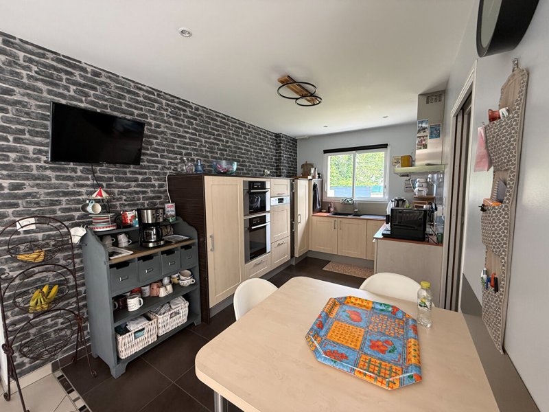 Construite en 2011, elle vous offre un hall d'entrée, un salon avec Bow Window et poêle à bois et un espace salle à manger pour une superficie de plus de 53 m² , une cuisine équipée et aménagée, une arrière cuisine/buanderie, une suite parentale avec dressing et une sde communiquante avec une deuxième chambre, à l'étage une mezzanine dessert la salle de bains avec wc et deux chambres avec placard aménagé.