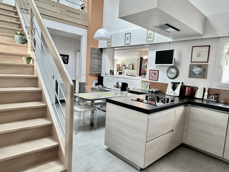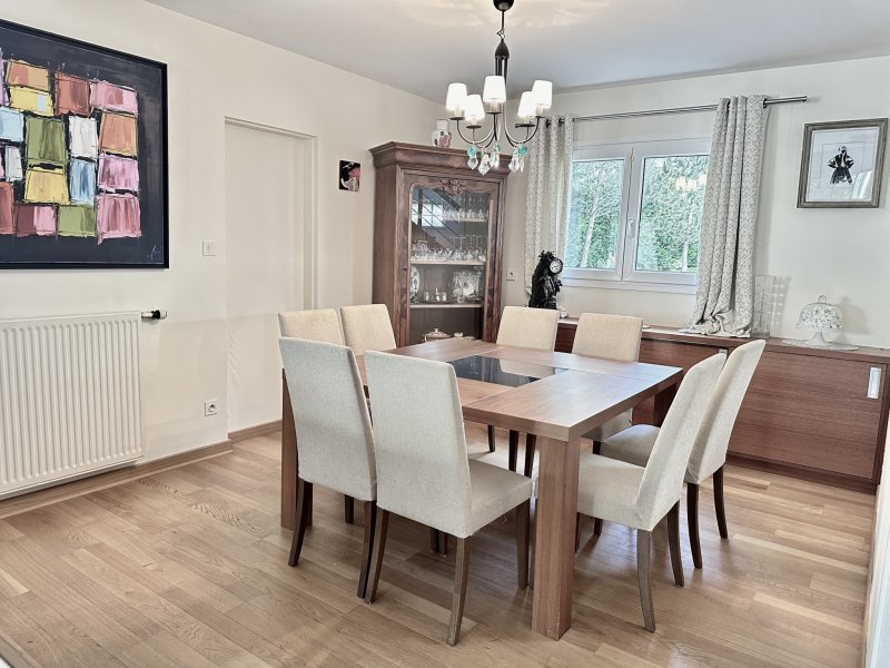EN EXCLUSIVITÉ chez Mon Élan Immobilier Dans un cadre verdoyant et calme, à quelques minutes seulement du bourg du Cellier, venez découvrir cette belle propriété de 1992, entièrement de plain-pied, nichée au coeur d'un hameau paisible. Implantée sur un terrain paysagé de plus de 3000 m2, en lisière de forêt, cette maison spacieuse est idéale pour une vie familiale harmonieuse, entre confort moderne et nature. Caractéristiques principales : Vie de plain-piedUn agencement fonctionnel et accessible, pensé pour le quotidien. Grande pièce de vieUn vaste séjour lumineux de près de 62 m2, avec un accès direct aux extérieurs : parfait pour recevoir ou partager des moments en famille. Cuisine moderne et équipéeCuisine aménagée avec soin, alliant esthétique et praticité. Espaces nuit bien distincts - Deux suites parentales, chacune avec salle d'eau privative, pour un confort optimal. - Un espace enfants séparé, comprenant deux chambres et une salle de bain. Bureau indépendantParfait pour le télétravail ou une activité à domicile. Piscine couverte et chaufféeUn véritable atout pour en profiter toute l'année, en toute saison. Équipements & dépendances : - Pompe à chaleur : pour un chauffage performant et économe. - Deux garages : espace de stationnement et de rangement. - Bûcher & jardin d'hiver : pour stocker le bois et protéger vos plantes sensibles en hiver. - Terrain en partie boisé : la section forestière de la parcelle offre la possibilité d'une exploitation de bois de chauffage, ajoutant un aspect pratique et durable à la propriété. Un bien rare sur le secteur, qui conjugue espace, tranquillité et confort. Cette maison vous séduira par sa qualité de construction, son environnement naturel et sa proximité avec les commodités du Cellier.