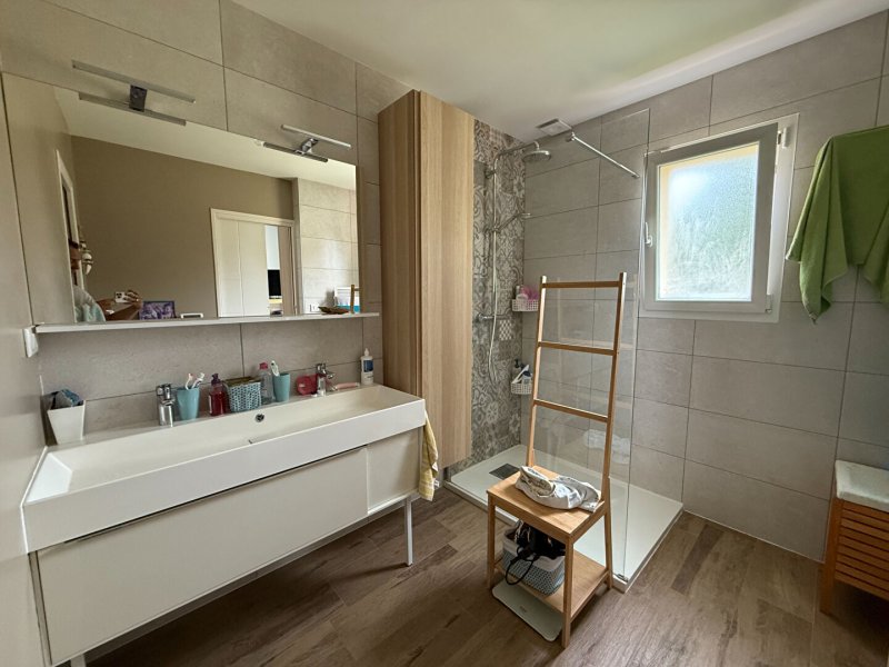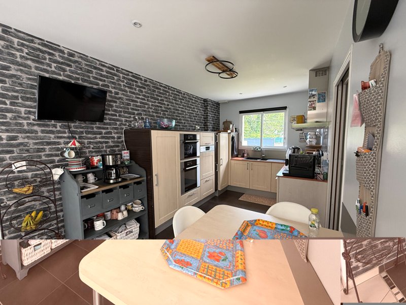 Construite en 2011, elle vous offre un hall d'entrée, un salon avec Bow Window et poêle à bois et un espace salle à manger pour une superficie de plus de 53 m² , une cuisine équipée et aménagée, une arrière cuisine/buanderie, une suite parentale avec dressing et une sde communiquante avec une deuxième chambre, à l'étage une mezzanine dessert la salle de bains avec wc et deux chambres avec placard aménagé.