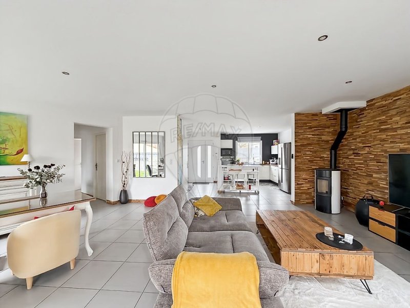 Entièrement de plain-pied, cette maison à ossature bois développe une surface habitable d’environ 97 m². Elle s’ouvre sur une belle pièce de vie traversante d’environ 55 m², particulièrement lumineuse grâce à sa multi-exposition et à son orientation Ouest / Sud-Ouest. Cet espace convivial se compose d’une cuisine aménagée et équipée ouverte sur un salon chaleureux agrémenté d’un poêle à pellets, capable de chauffer l’ensemble de la maison, ainsi que d’un espace salle à manger.