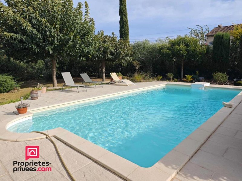 Belle piscine devant la maison, grande terrasse abritée, terrain clos sur 1000 m2.