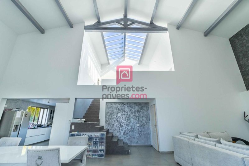 Elle est composée d'un séjour salon contemporain de plus de 67 m2 en plafond cathédral, une cuisine ouverte aménagée équipée de 23m2 donnant sur le séjour , une chambre parentale de 20 m2 au Rez-de Chaussée avec une salle d'eau et un dressing. A l'étage, trois belles chambres de 17, 18 et 19 m2 avec une salle de bains et un toilette séparé.