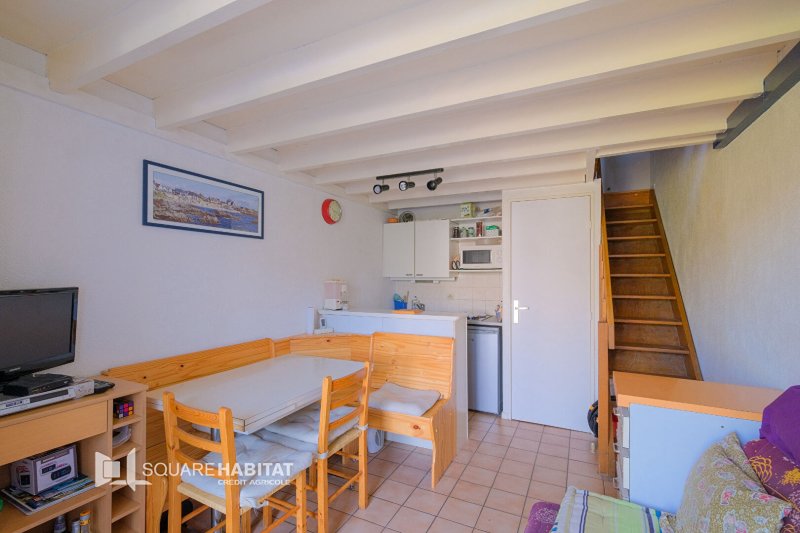Au coeur d'une des résidences bien connues du Pouliguen, maison en copropriété permettant de loger jusqu'à 6 personnes. Au rdc, pièce de vie avec cuisine ouverte, salle d'eau et toilette séparé. Au 1er chambre avec placard, et au 2è , 2 couchages simples.