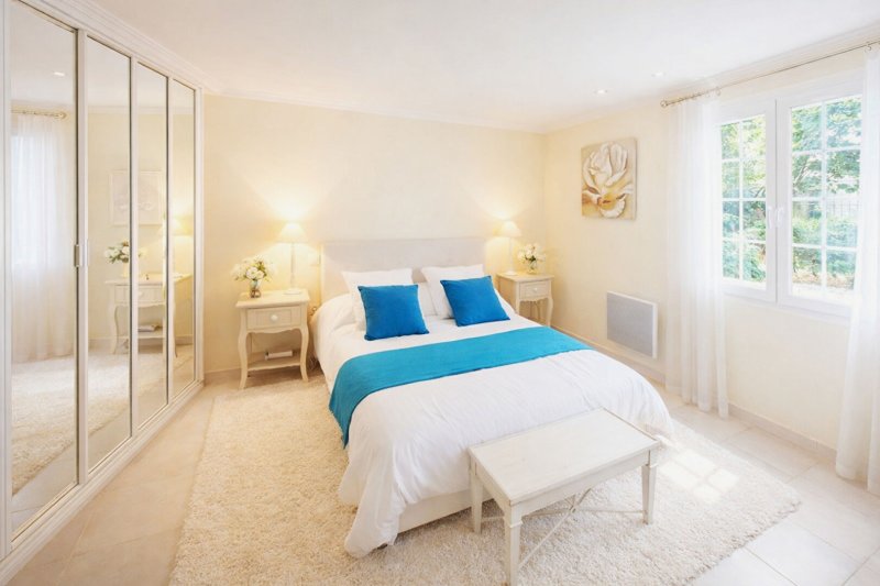 Au rez-de-chaussée : 2 chambres avec penderies, une salle d'eau et un autre sanitaire. Espace office