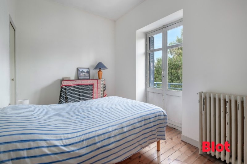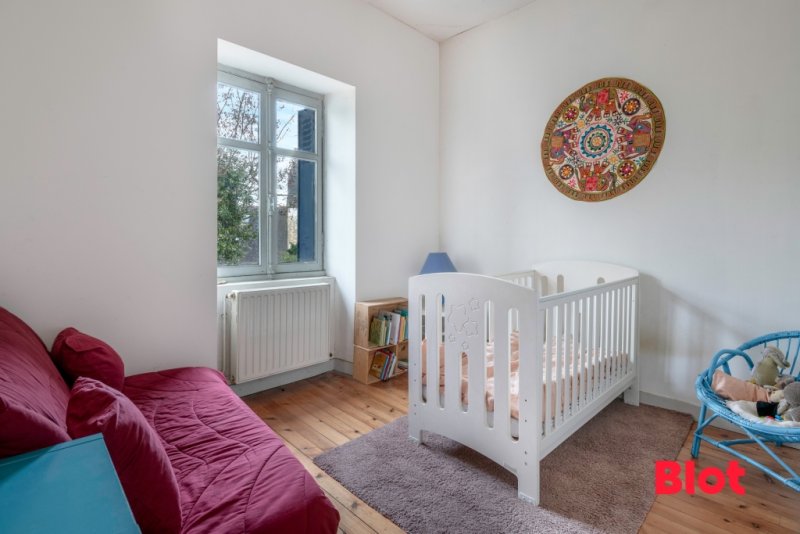 À l'étage, le palier dessert trois chambres au joli parquet, profitant également de belles hauteurs sous plafond qui renforcent la sensation d'espace, ainsi qu'une salle de bains avec WC.