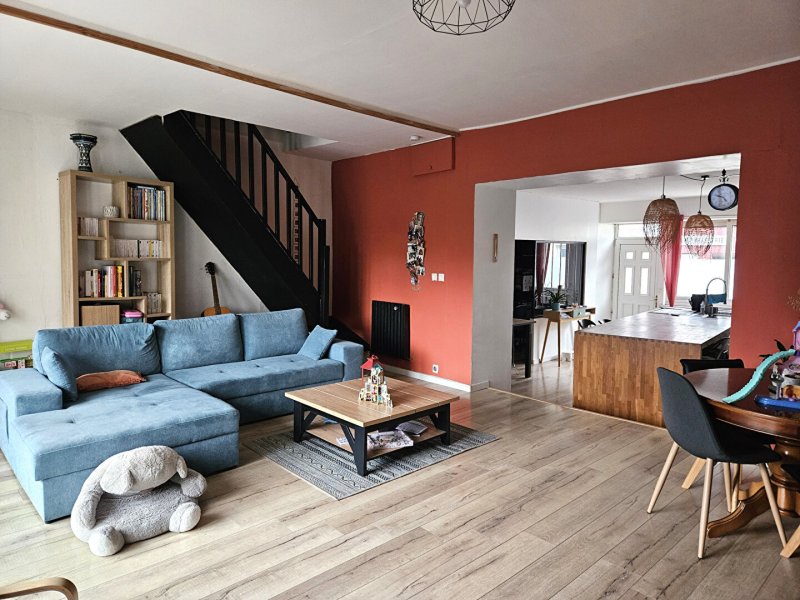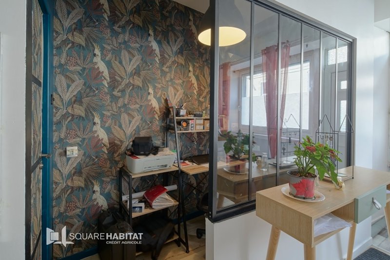 offre de beaux volumes et une luminosité remarquable. Entièrement rénovée, elle propose au rez-de-chaussée une cuisine moderne aménagée et équipée, ouverte sur un salon chaleureux, ainsi qu'un bureau, une buanderie et un WC.