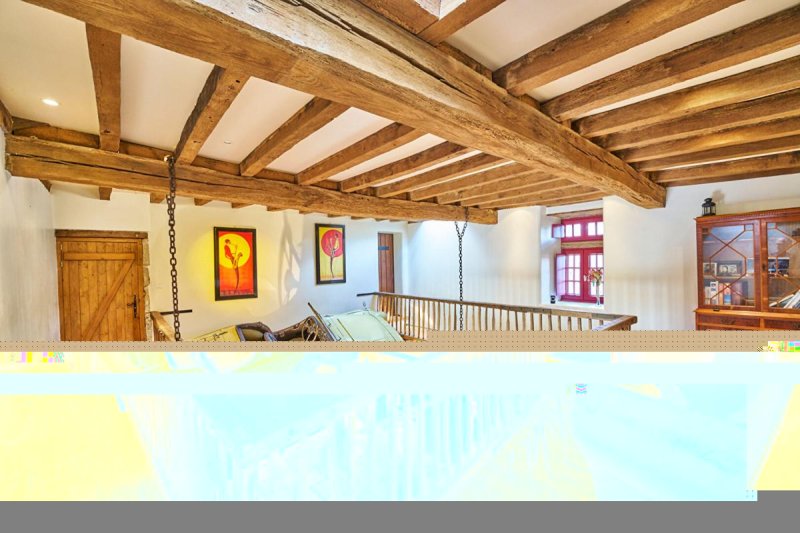 La propriété est composée au rez-de-chaussée d'une grande pièce de vie avec de beaux volumes, une cuisine équipée et aménagée avec cheminée, une chaufferie et une première chambre avec salle d'eau et WC au rez-de-chaussée de la tour. Vous accéderez à l'étage par un très bel escalier menant à une mezzanine plongeant sur la pièce de vie et donnant accès à 2 chambres avec salles d'eau et WC et une quatrième chambre parentale avec salle de bain et WC.