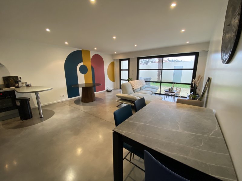 - Maison 80m2, 2 chambres, jardinet, terrasse, dépendance et 2 stationnements. - RARE sur le secteur - L'agence Vimmo vous propose cette maison de plain-pied (80m2) construite en 2009 sur une parcelle de 189m2 au calme dans la zone du BOURG, à proximité immédiate A PIED des commerces, des transports en commun (Chronobus C4) et des écoles, comprenant : - une entrée avec un placard, une pièce de vie lumineuse (41,15m2) sur un joli sol en béton ciré, avec une cuisine ouverte aménagée-équipée (plaque de cuisson, four, hotte, lave-vaisselle), le tout donnant sur une terrasse (17m2) avec un jardinet clôturé orientation Sud. - 2 chambres (10,50m2 et 10,80m2), une salle de bains (6,50m2) (2 vasques-rangements, baignoire, sèche-serviettes et branchement lave-linge) et un W.C indépendant (2,25m2). > En annexe une dépendance (5m2) située en fond de parcelle et une cour privative pour le stationnement de 2 véhicules. > Un jardin clos avec une orientation Sud ainsi qu'une terrasse (17m2). * Chauffage : plancher chauffant (électrique) / Volets roulants motorisés / huisseries aluminium double vitrage. Contactez-moi au O6 42 71 18 26 pour plus de renseignements et programmer une éventuelle visite. Guillaume DESEUVRE ; Agence VIMMO, Agent Commercial (adhérent FNAIM) à Vertou, Professionnel inscrit au RSAC Nantes N2017AC00369