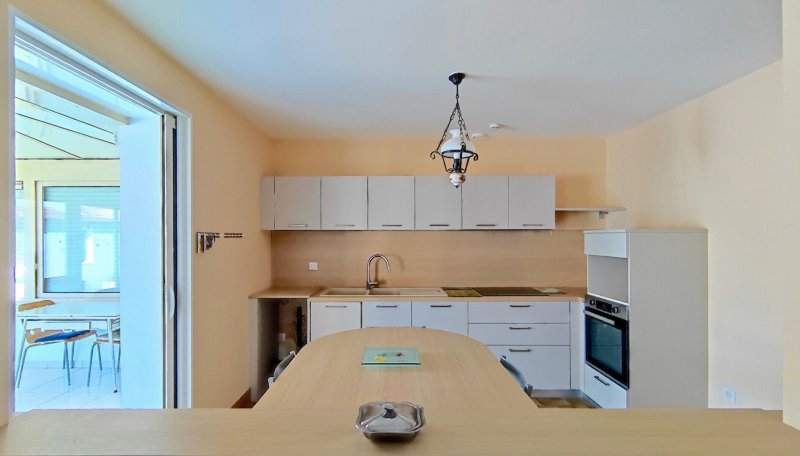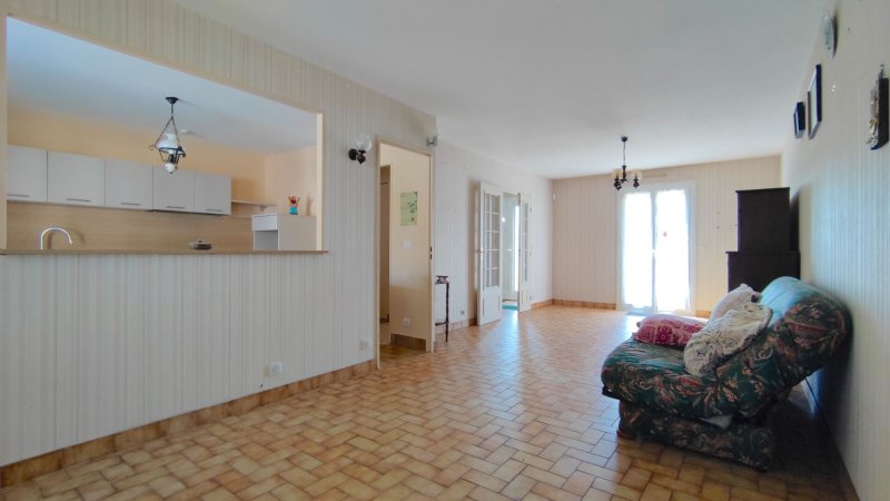 Concernant la maison, la pièce de vie de 27m2 est spacieuse et lumineuse, avec une cuisine semi-ouverte, aménagée et équipée en 2024.