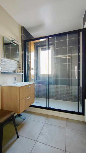 A l'étage, un pallier desservant deux chambres. Une salle de d'eau. Un toit terrasse qui peut être aménagé avec un salon de jardin ( ou encore il est possible de créer une extension )