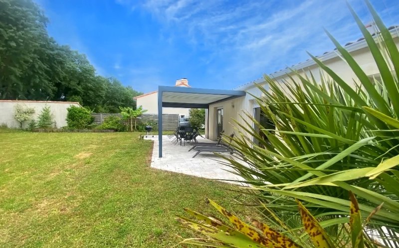 Ce bel espace de vie, exposé sud-ouest donne directement sur son jardin et sa terrasse avec une pergola bioclimatique, idéale pour les repas en famille ou entre amis.