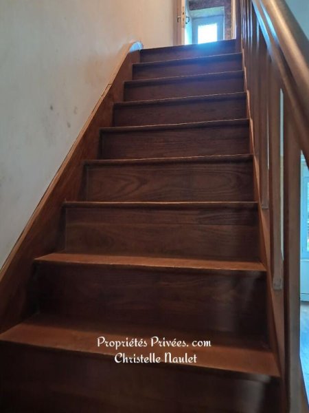 On accède à l'étage par un très bel escalier en bois qui dessert deux chambres, une salle de bain et un WC.