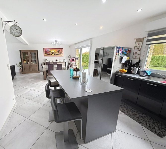 Vaste pièce de vie lumineuse de près de 50 m² avec cuisine moderne ouverte