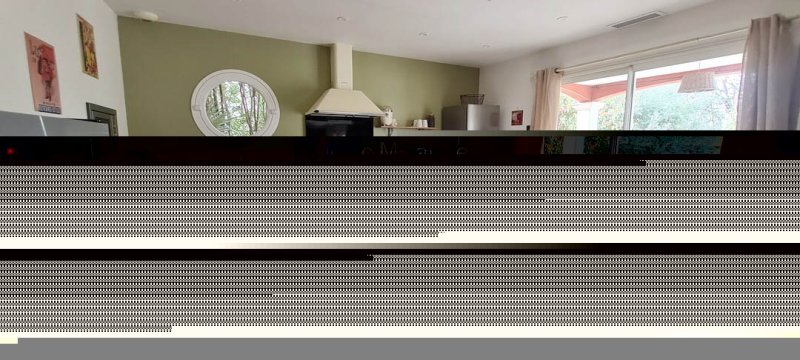 La villa se compose d'un hall d'entrée de 5,77 m² avec placard, un spacieux espace de vie lumineux et climatisé de 65m² avec sa jolie cuisine équipée, avec un îlot central, le tout axé par les baies vitrées à la terrasse