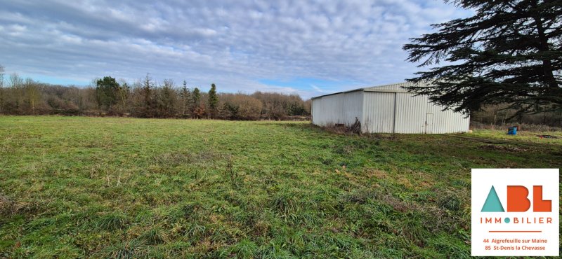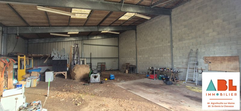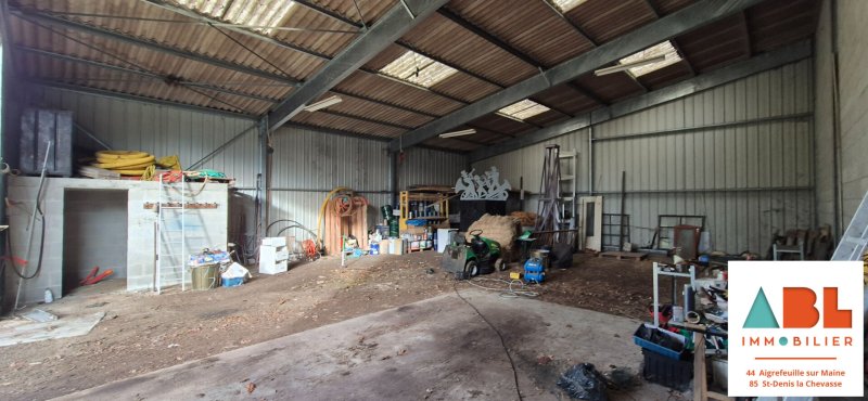Nouveauté à Maisdon sur Sèvre, bâtiment d'une surface de 180 m² en ossature métallique, toiture en fibro-ciment, sol en terre battue en majorité avec une petite partie en béton, double portails métallique d'une largeur de 6m et d'une hauteur de 4m.