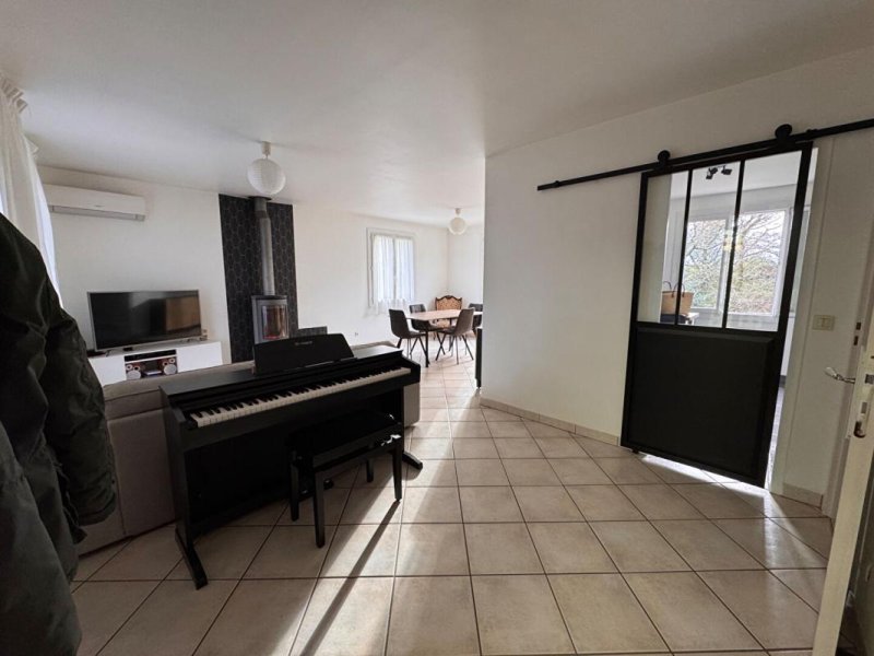 Au plain pieds, une belle pièce de vie traversante, agrémentée d'un poêle à bois avec son espace salon et son espace salle à manger. Une belle terrasse surplombante offrant un accès et une vue sur la nature environnante et verdoyante, une cuisine indépendante entièrement équipée, 3 belles chambres, une salle de bains et un WC.