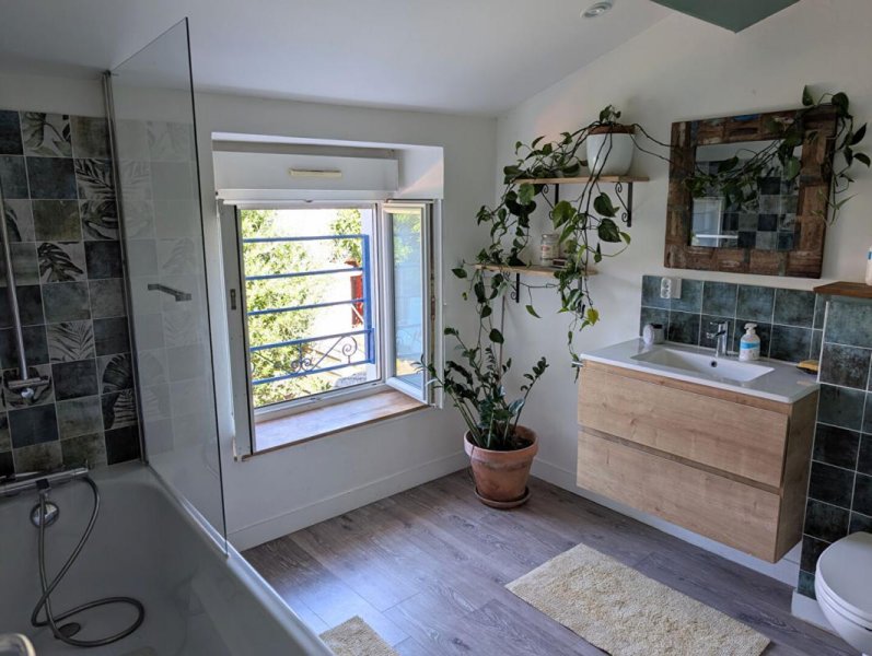 Maison de bourg à 2 pas de tous les commerces, écoles, transports, sur jardin clos sans vis à vis comprenant en rdc salon avec cheminée (insert), cuisine aménagée et équipée, sde, WC, espace lingerie, à l'étage 3 chambres, sdb avec WC, dressing et au 2nd espace bureau (poss. chambre).