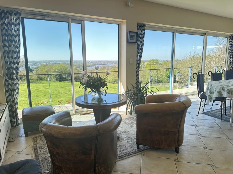 Surplombant majestueusement la vallée de la Loire, cette propriété unique offre un cadre de vie rare, alliant espace, lumière et nature préservée. Nichée sur un coteau recherché, elle profite d'une situation idéale, à seulement quelques minutes de Nantes et à proximité de la gare, permettant de rejoindre la ville en 12 minutes grâce au TER.