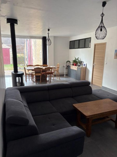 Elle se compose, d'une cuisine équipée et aménagée, d'un salon/salle à manger de 30 m² avec son poele, deux chambres, un bureau, une salle d'eau et une salle de bains, 2 wc, un grenier.