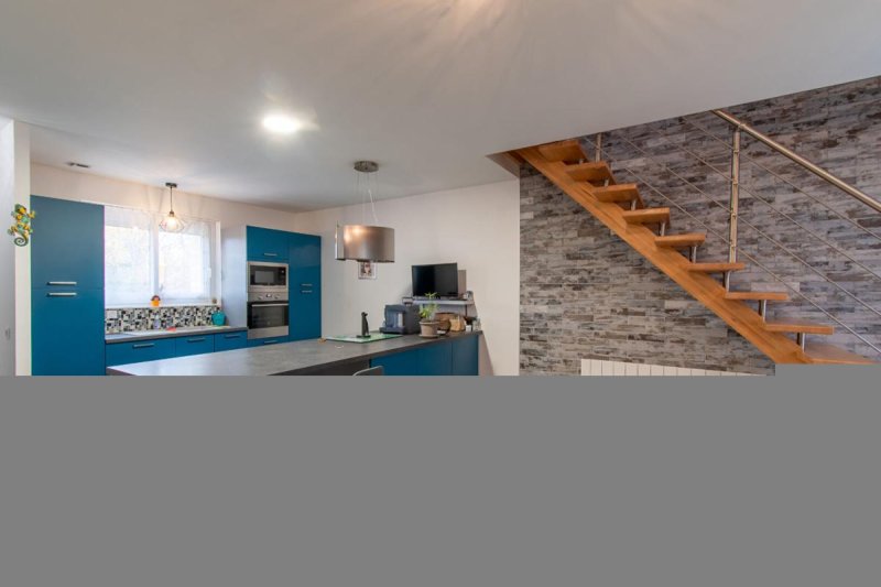 - Au rez-de-chaussée, une entrée donnant sur un séjour/cuisine, un salon, une salle d'eau, un WC séparé.