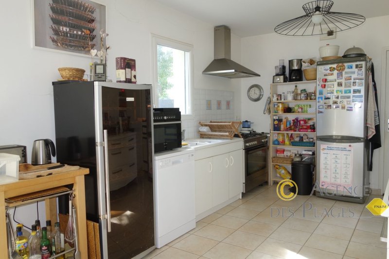 QUIMIAC PROCHE CENTRE - Maison 4 chambres à vendre - La plage et les commerces à pied Maiuson, de 2010, 4 chambres à vendre à Quimiac, située à 2 pas de la plage et du centre-ville : séjour-salon très lumineux, cuisine ouverte, une chambre, salle d'eau, wc, à l'étage : palier, 3 chambres, salle de bains, wc, Terrasse ensoleillée. Garage attenant (possibilité pièce au-dessus), abri de jardin, terrain de 450 m². Les informations sur les risques auxquels ce bien est exposé sont disponibles sur le site Géorisques : www.georisques.gouv.fr