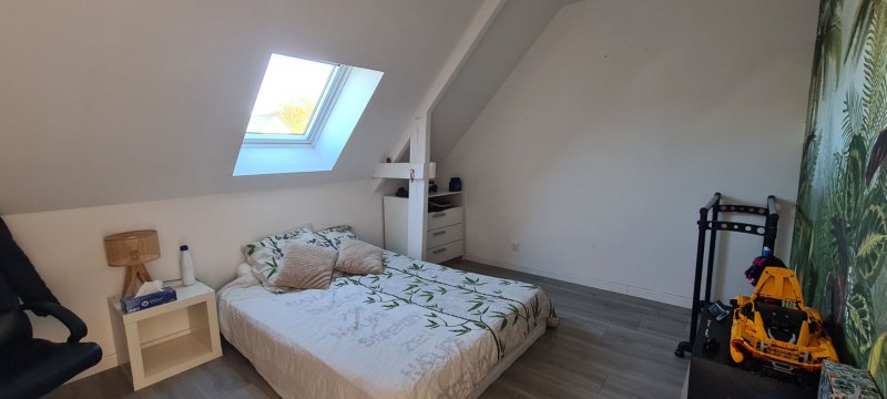 À l'étage, trois chambres lumineuses, une grande salle de bains avec douche ainsi que des rangements, répondent parfaitement aux besoins d'une famille.